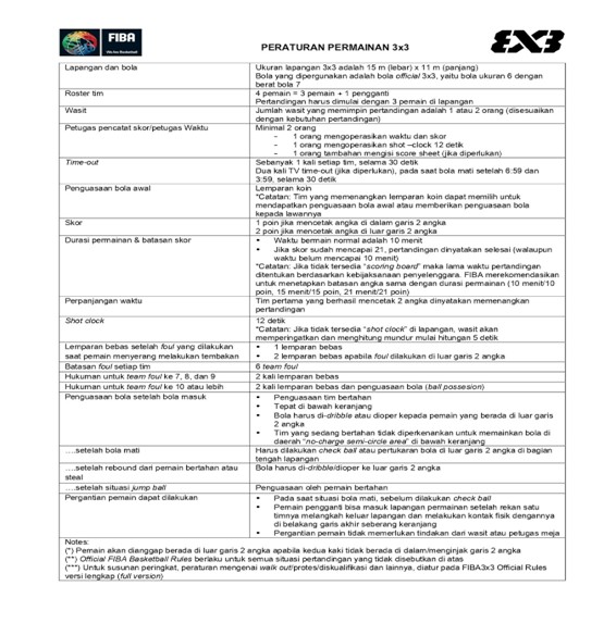 | 1 | Menggunakan peraturan FIBA 3X3 |